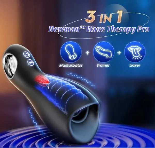 The 3-in-1 Wave Therapy – Newman™ is simultaneously a glans trainer, tongue stimulator, and automatic wave therapy masturbator. It offers 10 shockwave patterns to increase stamina, 5 speed levels to stimulate the glans, and a tight, deep 360° shockwave massage for perfect regeneration of all areas of the penis.